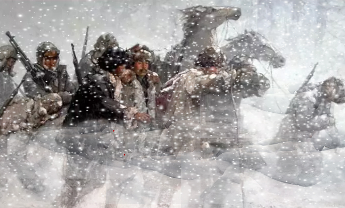 此时此刻,我正站在阳台,看着窗外飞舞的雪花,想着当年战风斗雪的场景和政委的话,思绪再次飞舞起来。是啊,政委说得对,咱才在风雪中苦累了30个小时,与当年红军爬雪山超出人类极限的奇迹相比,又算得了什么呢?不过,红军当年爬雪山也仅仅是仅用了几天的时间。更有远比长征爬雪山还要艰苦、还要悲壮的,那就是东北的抗日联军。世界上似乎从来没有一支军队,像东北抗联这样,无论是总司令还是普通士兵,在10多年的时间里每到天寒地冻,都要在冰雪中露营,在饥饿线上挣扎。在当代人类难以生存的条件下,坚忍不拔,不屈不挠,进行着人类历史上罕见的反侵略斗争,誓与日本侵略者血战到底。他们没穿过棉衣,没住过房子,没吃过一顿饱饭,时常以草根、树皮和棉絮充饥,在极艰苦的条件下频繁出击日寇,血战到最后一息,创造了歼敌18万,牵制日伪军近百万的奇迹。杨靖宇、赵尚志、赵一曼......哪一个不是令日本鬼子胆寒的英雄!他们饥寒交迫,爬冰卧雪10年啊!与抗联英雄相比,我们才30个小时的抗风斗雪,又有什么资格轻言苦和累呢?