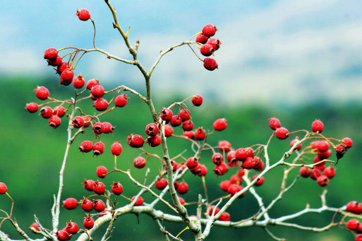 山里红树有着极强的生命力。再贫瘠的土地也能见到它旺盛的生命。平时这种果子不显山不露水,干干巴巴地挂了满树,路人睬也不睬。秋天,累累红果垂满枝杈真是一道养眼的风景。
