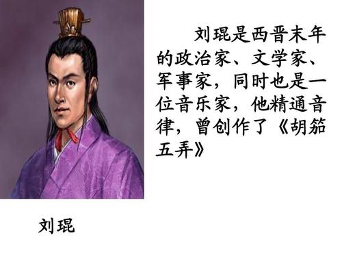 刘琨擅长吹啸。《晋书·刘琨传》记有他清啸破敌、胡笳救孤城的故事。那是他在并州刺史任上,有一次,晋阳被匈奴数万铁骑包围。城中兵寡将少,刘琨一面严密防守,一面修书请求援军。过了七天援军还未到,城内粮草匮乏,兵士恐慌万状。月夜中,刘琨登上城楼巡查,俯眺城外敌营,不觉对月清啸,城下的匈奴兵士闻听,皆凄然长叹。半夜时,刘琨又把胡笳乐队拉上城头,齐奏胡笳。哀伤凄婉的胡笳乐曲,勾动了匈奴兵将的思乡之情,个个“流涕歔欷”。拂晓时,再次吹奏,匈奴兵心无斗志,遂撤兵而走。此事也成为音乐史上的一段佳话。