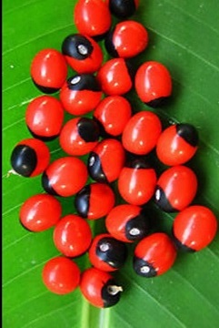 赤豆是我们日常食用的豆子,颜色暗红,和相思无关。海红豆鲜红,相思子半红半黑,都可用于装饰,至于“红豆生南国”的红豆是海红豆还是相思子,有人会争论,但我不想争,都生在南国,都可以相思。我个人以为相思子更切合相思的特点,一则是半红半黑相互依存,一则是它的剧毒,正是相思的特点,而且它本身就叫相思子,红豆其实是它的别称。