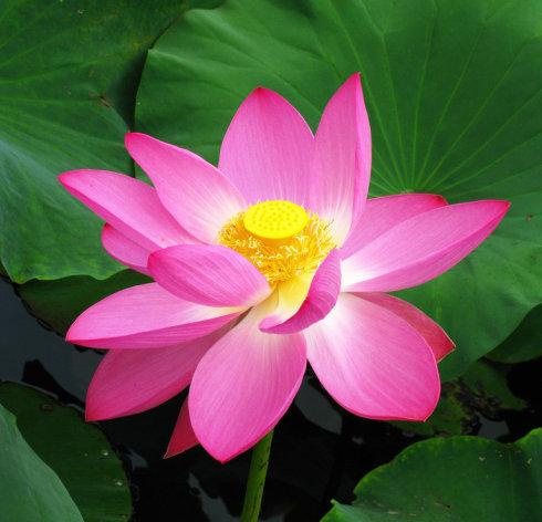 圣洁甘愿百花后,自擎蓬叶隐孤舟。