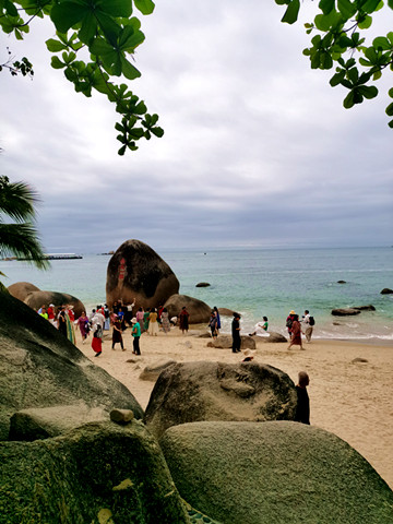 第四天我们去一个叫呆呆岛的地方,或许人生就是这样,找一个清静的地方发发呆,不失为一种倾空自我、回归自然的好方法。在这个游客不多的地方,一样有着蜿蜒的海岸线、金色的沙滩和黝黑粗犷的礁石。赤足走在细软的沙滩上,出神地望着由远而近的海浪一拨又一拨推波逐流,看天上翱翔的海鸥,还有白色的骏马、顽皮的猴子,一切都是如此惬意。