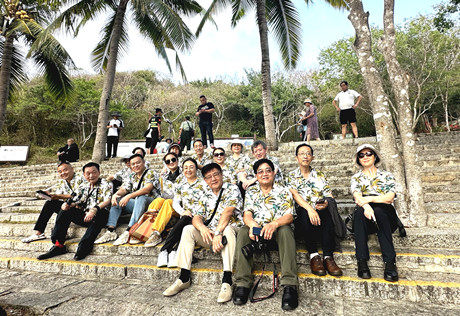 今天,正值阳春三月的好时光,海军舟山基地83、84届演出队在海南三亚举行战友联谊会,而发出邀请并作为东道主的正是已经在天涯海角扎下根,成为企业老总的刘指导员。为了更好地办好本次战友联谊会,他向我们俩发出邀请。于是,原本与这次战友联谊会没有关联的我们,如同战士接到出征命令一般,没有半点犹豫和推迟,整理行囊,带上夫人一起奔赴三亚,协助老首长全力以赴当好东道主,组织好战友联谊会,一场期盼已久的欢乐盛宴即将精彩纷呈拉开帷幕。