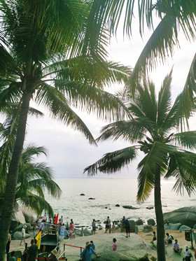 目光缓缓略过独居特色的椰树、沙滩、碧海蓝天
