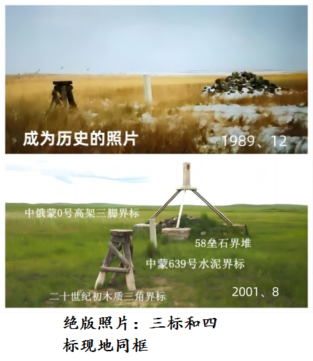 那个木制三角架原件和复制品分别进入满洲里边防部队展馆和内蒙古军区展馆。顺便说一句,我这几张原版照片也是历史的见证,因为现地已经看不到三标和四标同框的景象了,为此也要感谢部分照片的提供者甘春声先生。
