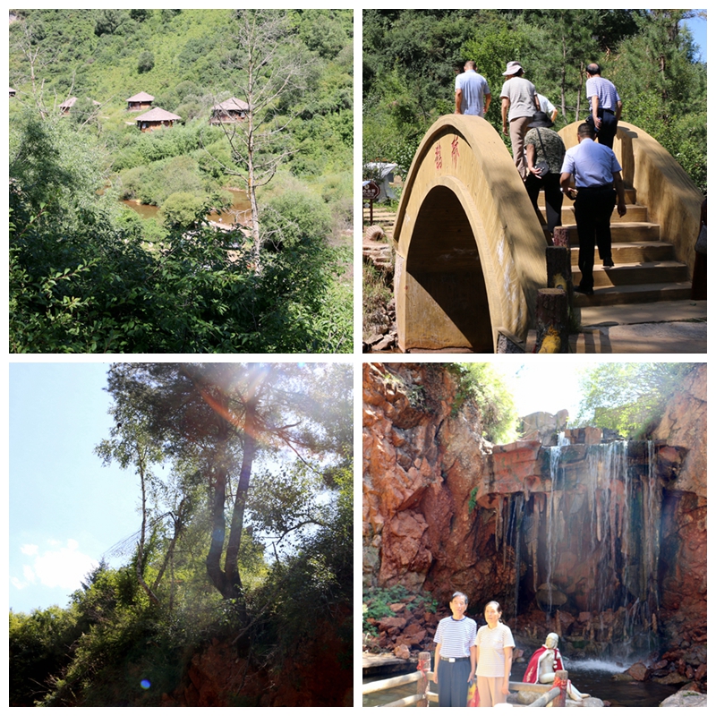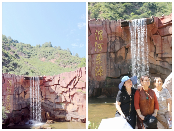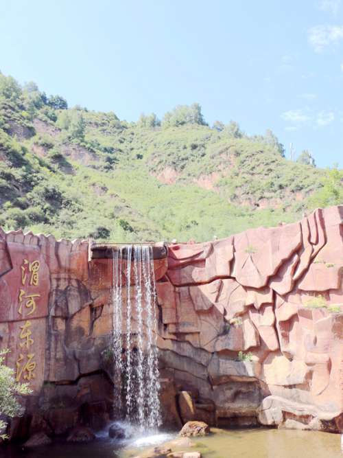 沿着溪水溯流而上。通幽曲径茅屋亭、茶舍小桥棋布星,匠心独奇自然美。汇流溪平如镜。亭台楼阁倒映水。湖边小径朝前行,一瀑晶莹碧潭坠,垂帘闪烁降高峰。来到了“渭河东源”,四个大字使人兴奋,出口尤如天井,喷涌而出,聚合了悬崖落下的水珠,从山而降的瀑布。我们坐在瀑布前,感悟着历史的足迹,华夏文明的起源地,人文始祖伏羲(距今约(8000年——6500年))、女娲(6500年——5000)和人文初祖炎帝(公元前4766—公元前4513共8代)、黄帝((公元前2717年——公元前2599年):)都是率先发祥于渭河流域。渭水流域构成了中华文明的发源地之一。