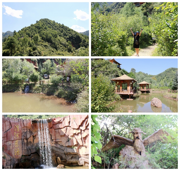 在停车场下车后,发现了一方奇石上刻着:“东源仙境”就在走下峡谷的台阶的旁边。沿台阶的远眺,对面有许多蒙古包分散在绿色植被之间。有些家长和小孩在清澈的水池中戏水游玩。