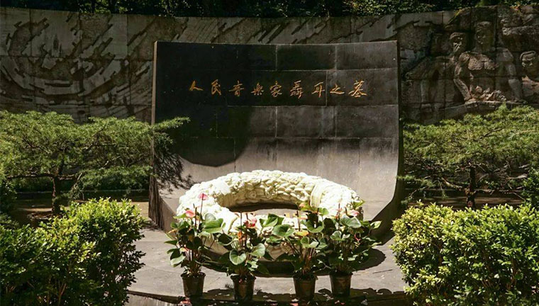 读着这催人泪下的墓志铭,看着郭老那大气磅礴、神韵飘逸的手书,望着这汉白玉的雕塑,我低回盘旋,我凝神沉思,耳旁突然响起《大路歌》《打桩歌》《毕业歌》《卖报歌》《苦力歌》《码头工人歌》……啊!一个年轻不朽的灵魂已化作永恒的音符,鼓舞人们用血肉筑起中华民族新的长城!我心里像刮起一阵风暴,把心海里的洪波巨浪掀起,让我思绪腾跳,激荡不已……