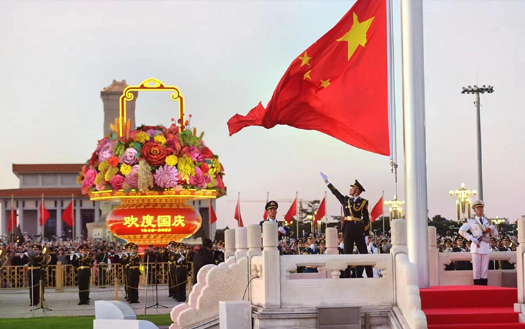 君不见,七十多年来,每当这“前进!进!”的时代壮音响处,伴着五星红旗冉冉升起,中国人民在哪里都扬眉吐气 :
