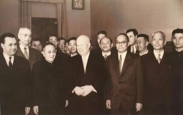 1961年4月,苏联部长会议主席赫鲁晓夫,会见外贸部部长叶季壮和副部长李强率领的中国贸易代表团,赫鲁晓夫左侧为李强