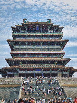 天不亮,我们就踏上了行程。接近中午,坐南朝北根基敦厚雄伟壮观的鹳雀楼终于从心里跃出,高高矗立在我们面前。