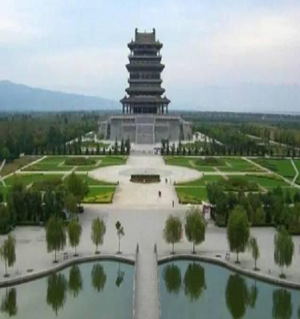 鹳雀楼,外观四檐三层,内分六层,总高73.9米,总建筑面积33206平方米,是现存最大的仿唐建筑,在建筑形制上充分体现了唐代规模宏大、规划严整、木建筑技术成熟、砖石增多的繁盛气象。