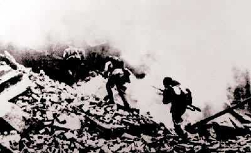 第一爆破手出发不久腿部中弹倒下,父亲见状立刻起身连续向敌堡投掷了两颗手榴弹,趁着夜色和烟雾迅速上前,从受伤的爆破手身边捡起炸药包匍匐前进到敌堡前,放好炸药拉好导火索,并迅速离开卧倒。