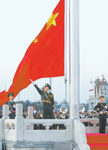 旗杆像一根银色的骨头,戳破暗蓝的穹顶。