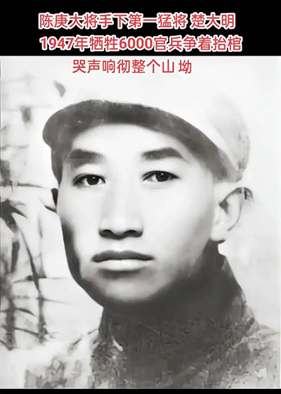楚大明,32岁,河南人,1931年入党。现任我纵队十旅副旅长。他艰苦奋斗16年,光荣负伤20余次……不幸在此次汾孝战役中光荣牺牲,实为极大的损失,全军上下悯懊异常。