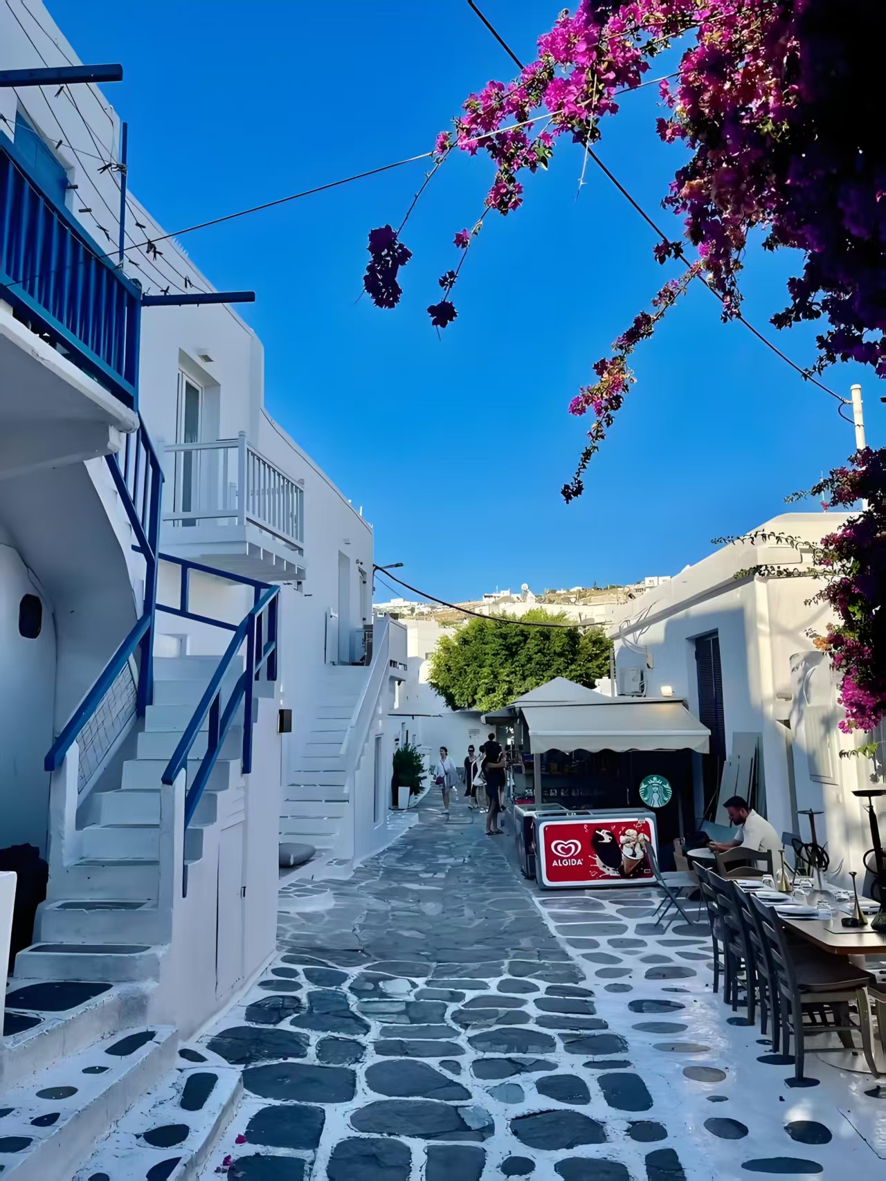 有人说旅行是逃离熟悉看风景,可我觉得,旅行的意义是在陌生里遇见温暖,重新认识世界与自己。米克诺斯教会我,最美的风景从不是建筑与海景,而是那些“人性之光”。海风带着柠檬香吹来,我闭上眼微笑——爱琴海的蓝会淡,风车会模糊,但善意会像种子生根,无论山海相隔、语言不通,人性的美好永远相通。这份跨越山海的纯粹,是旅行最珍贵的馈赠。
