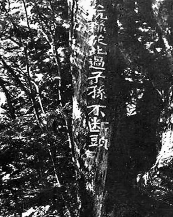 (“抗联从此过,子孙不断头”,抗联战士用刺刀划刻。)