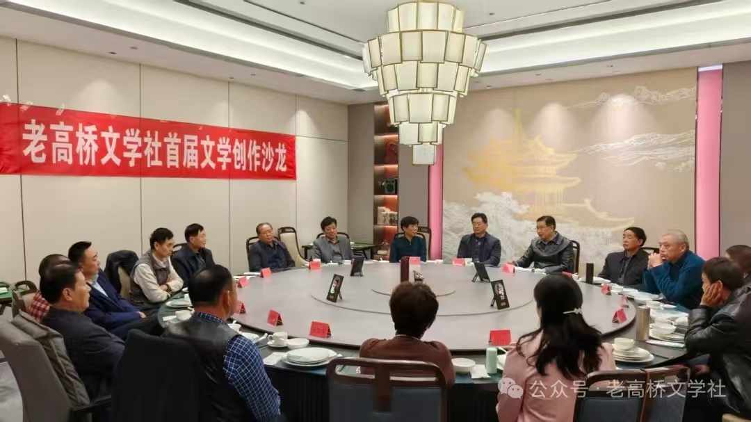 立冬次日,人行道的风还带着秋日的余温,未及在窗玻璃上绣出细白霜花,指尖触碰到不锈钢门的把手,仍然可以感觉到一丝凉意。县城繁华区域“印象盱眙”饭店“聚贤阁”包间,已腾起春潮般的暖意。鎏金吊灯的光,漫过红木圆桌的包浆,印着近二十张笑纹里刻满岁月的脸。这是盱眙高桥老乡,期盼已久的文学沙龙之约。