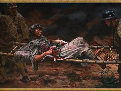 他咬着牙,额头青筋暴起,豆大的汗珠顺着脸颊滚落,却没哼一声,用染血的双手小心翼翼地把肠子塞回腹腔,撕下腰间的布条,一圈又一圈紧紧缠住伤口,布条瞬间就被鲜血浸透。“跟我冲!杀出一条血路!”他沙哑的吼声穿透炮火,带领战士们继续冲锋。子弹打光了,就用刺刀捅;刺刀弯了,就用枪托砸;枪托断了,就用石头、用拳头、用牙齿和敌人拼命。