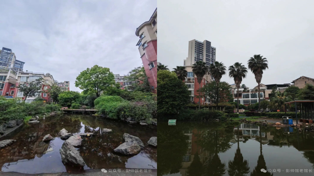 清晨的风带着草木的清甜,拂过园中的一汪池水。白帆似的廊架静立水畔,倒影在水面铺成对称的画,柳丝垂落,把风都揉得软了。溪流穿园而过,两岸草木疯长,红墙白窗在绿意里若隐若现,石间清泉潺潺,木桥横卧,把两岸的葱茏连在一起。棕榈树亭亭玉立,楼宇在水镜里成双,连阴天都成了温柔的底色,每一步都踏在江南的温婉里。