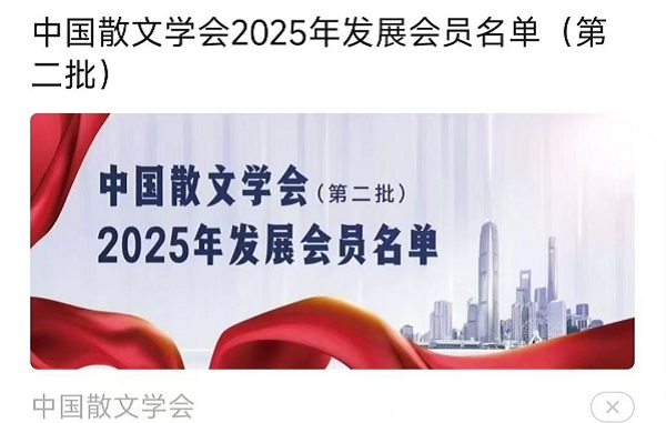 【银河喜讯】祝贺银河文友南庄隐士老师加入中国散文学会