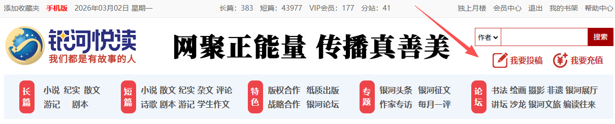 点击:短篇全文作品投稿,在弹出的页面,按步骤1--5,进行操作。