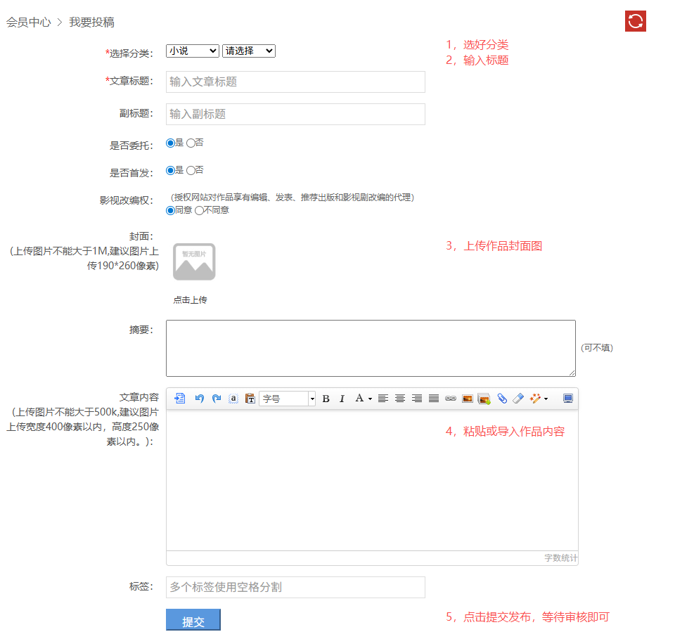 长篇短篇:如何快速,简单的投稿?