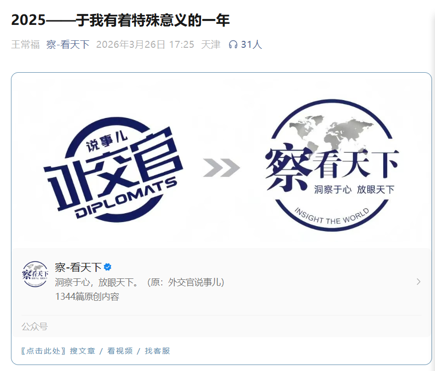 祝贺退休武官王常福佳作刊登《察看天下》公众号,可喜可贺学习并点赞!