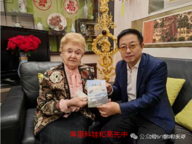 俄中友协第一副主席、“友谊勋章”获得者嘉·维·库里科娃女士与中俄新丝绸之路文化发展基金会会长、驻俄晋商商会总代表高先中先生在展示《雄鹰礼赞》一书。 图源:作者提供