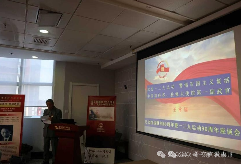 王常福武官在纪念“一二·九运动”座谈会上发言。 图源:作者提供