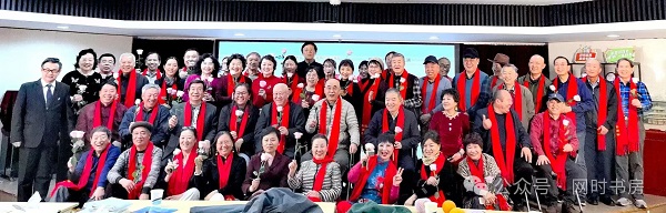 抽奖环节,虽然我没有得到台上发的书籍、书法、绘画等奖品,但作为嘉宾参加了抽奖,给文友带去了好运!李会长说:“今天到会的人都有奖品,没在台上领到奖品的来宾,散会时到门口服务台领奖。”合影时,全场气氛达到了高潮,一片红色的海洋(每人都戴着喜庆的大红围巾),一片欢乐的海洋!