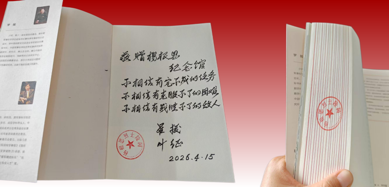 祝贺2026年4月23日第31个世界读书日到来之际,罗援将军向杨根思纪念馆签赠《战旗美如画》;红叶基金会党支部副书记刘海江分享品读《战旗美如画》体会主题活动圆满成功!罗援将军为传承红色基因一直都在起主导作用,让我们为罗将军点赞!