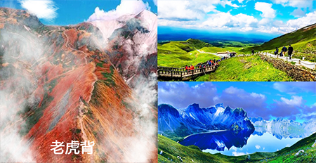 在长白山的西坡,就有一条突兀而立的山岭,在喘气坡的后半段,山形像一只趴着的老虎。叫做“老虎背”,是到达天池的“拦路虎”,也是最后一段关卡。这段路最初时据说是一条鹿群觅食跑出来的野道。“老虎背”的脊梁狭窄,小路宽只有半米左右,仅容一人通过。两侧是山涧峡谷,十分险峻,时有云雾流动,那云雾甚至就在你的身边缭绕。在两侧幽静的峡谷中,有一股股的细流飞瀑哗哗震耳,使人心惊胆颤。