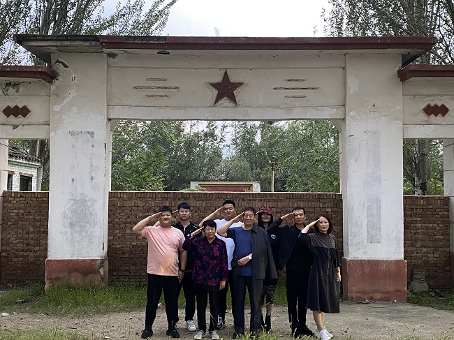 【全家人在617团原址门口敬礼照片】