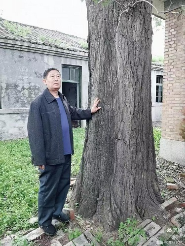 【父亲站在老檀树旁照片】