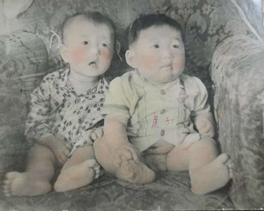 无奈之下父亲只好找了一个奶妈照顾我,这是我和奶妈孩子一起照的照片,那个胖的是我,奶妈的孩子比我瘦,是我把奶妈孩子的奶全抢着喝了,真不好意思。